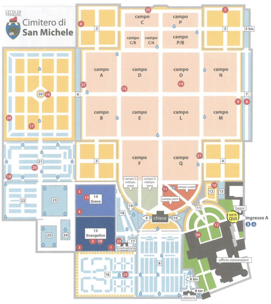 Entrance to the cemetery is via ferry lines 4.1 & 4.2 at the “Cimitero San Michele” stop.